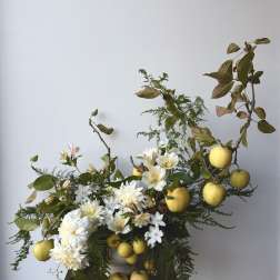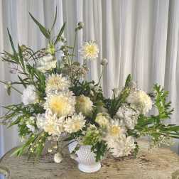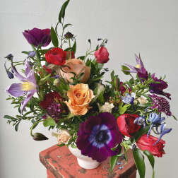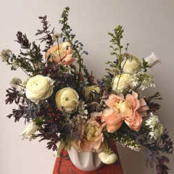With this in mind, we offer mostly seasonal "designer's choice" designs, allowing our customers to choose a desired color palette and feel. Our customers choose to order with us over and over knowing we'll always provide something fresh, unique, sustainable, and stunning within the color palette they select. This supports our philosophy of art over assembly line, which allows us to buy only what's fresh and in-season. This also allows us as designers to stay flexible and creative in our work. We love working with our customers and your trust and belief in us means everything.